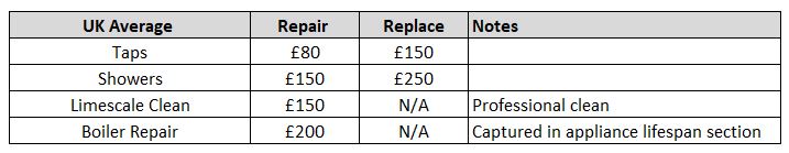 We will be honest; this one is a little harder to put some numbers to. There are a few things that we could capture in repairs and plumbing maintenance. The most common are replacement taps, showers, servicing to clean limescale, and boiler repair.