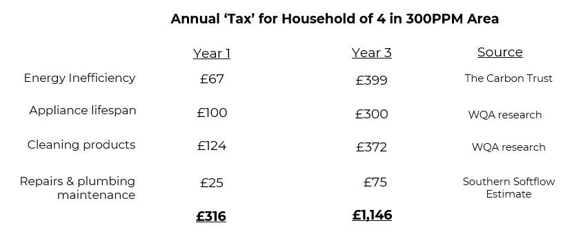 So, when we add it up over time. Our conservative estimate in three years would be that you would be looking at a hard water tax of over £1000.